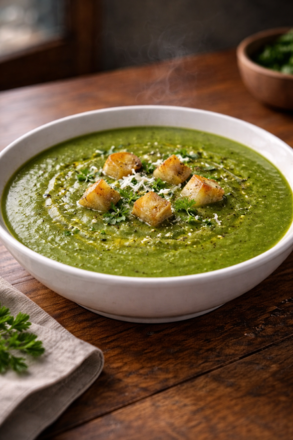 La crema de espinaca representa la unión entre salud y placer. Es un plato que cuida el cuerpo sin renunciar al sabor, asociado a comidas tranquilas, a la cocina familiar y a ese tipo de recetas que se preparan con la intención de alimentar bien y reconfortar al mismo tiempo.