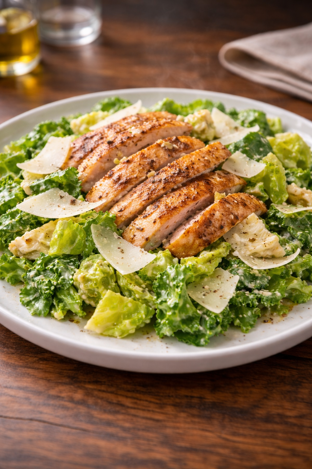 Servida en un plato amplio o en un bol grande, la ensalada César keto transmite sencillez y sofisticación al mismo tiempo. Es perfecta tanto para una comida ligera como para una cena consciente, sin sensación de culpa ni pesadez.