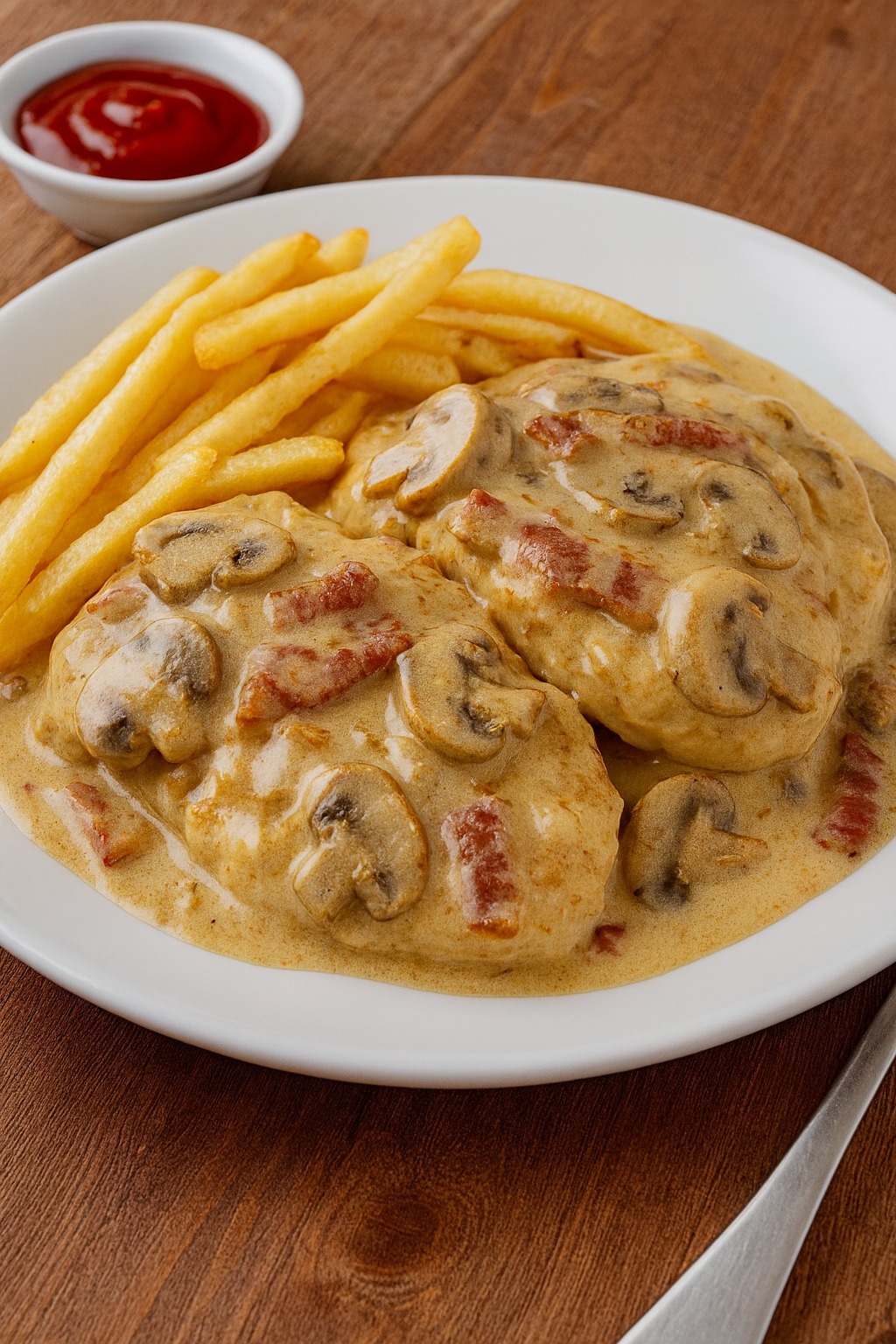 Los filetes de cerdo en salsa cremosa pertenecen a la tradición culinaria europea, especialmente de Francia y España, donde el cerdo siempre ha sido una proteína fundamental. Las salsas elaboradas con nata (crema de leche) surgieron para aportar suavidad a carnes magras como la pechuga de pollo o el lomo de cerdo. Con el tiempo, se empezaron a combinar ingredientes intensos como el jamón curado y los champiñones, creando platos más profundos, aromáticos y elegantes.