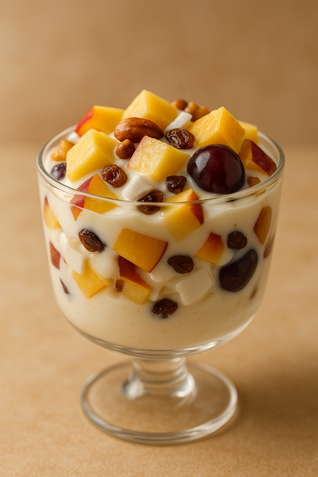 Esta ensalada cremosa tropical demuestra que la cocina saludable también puede ser profundamente deliciosa y reconfortante. Cada ingrediente aporta un toque de frescura, dulzura y suavidad que recuerda a los sabores del verano, incluso en días fríos. Prepararla es un acto simple, casi meditativo, donde solo se necesita fruta fresca, un poco de paciencia y ganas de compartir algo natural y delicioso.