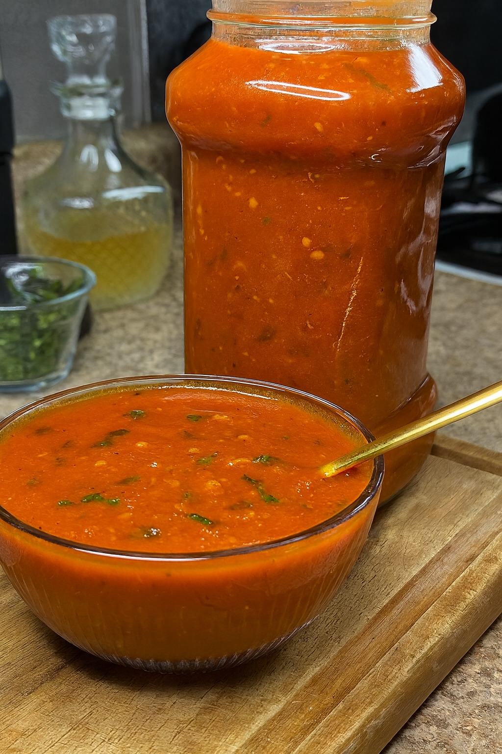 Hoy, esta receta sigue siendo un símbolo de amor, paciencia y tradición. Porque una buena salsa casera eleva cualquier plato — desde una simple pasta hasta un pescado al horno o una pizza artesanal.