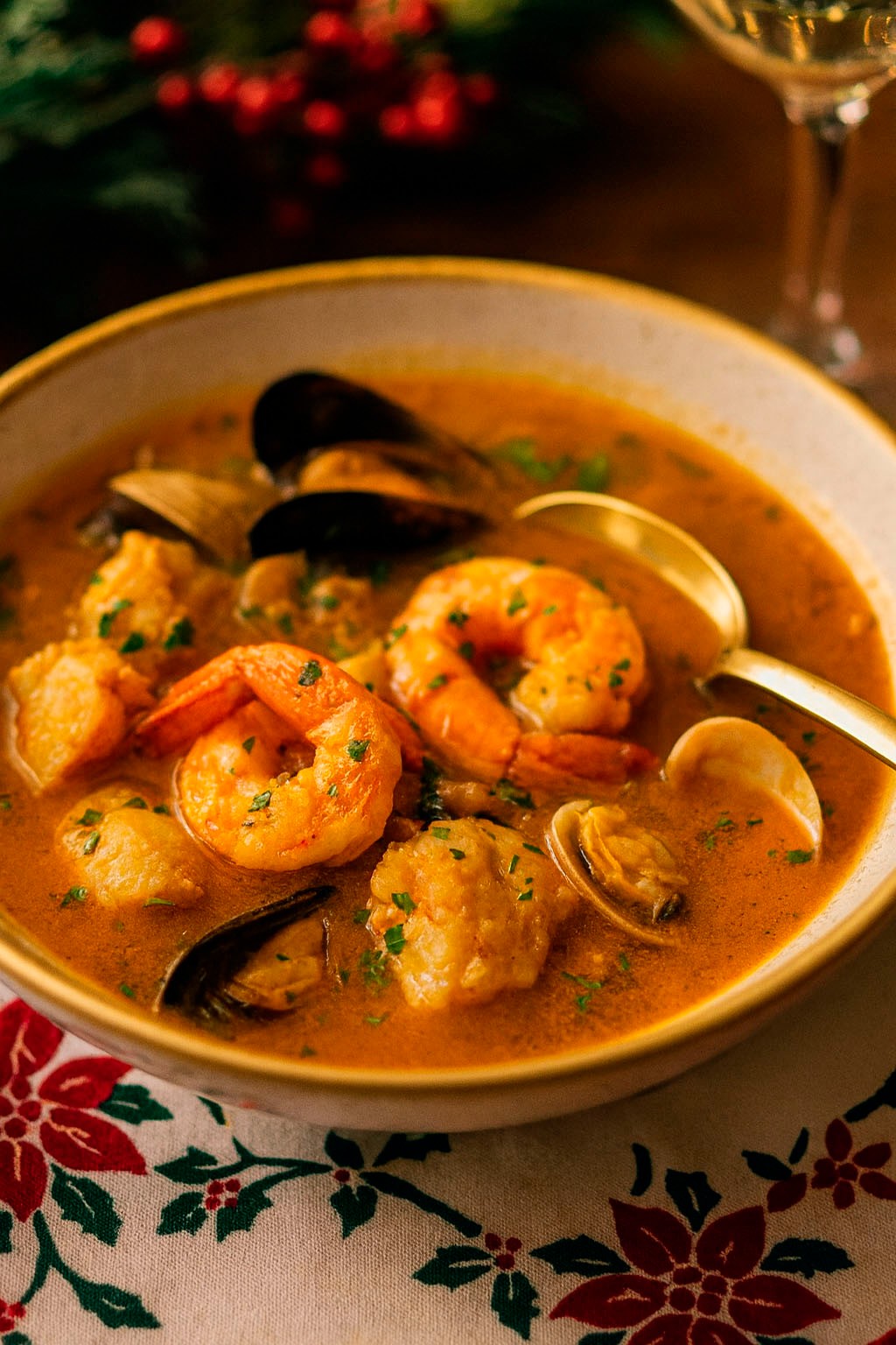 En España y Portugal, la sopa de marisco se convirtió en un símbolo de abundancia y unión familiar durante las fiestas decembrinas. Cada región adaptó la receta según su disponibilidad de mariscos: langostinos, gambas, mejillones, almejas, pescado blanco y, en ocasiones, incluso cigalas o vieiras. El resultado es un caldo profundo, aromático y reconfortante que refleja el espíritu navideño: calidez, reunión y generosidad.
